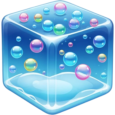 An ice cube surrounded by hundreds of floating bubbles emoji