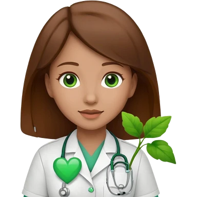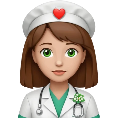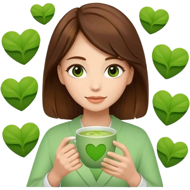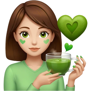 Brown hair Nurse with green heart surround her and she is grabbing a matcha emoji