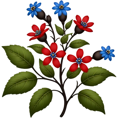 dull green leaves & red & blue flowers filigree design, leaf shapes, flower shapes, nature shapes, toxic nature, toxic plants emoji
