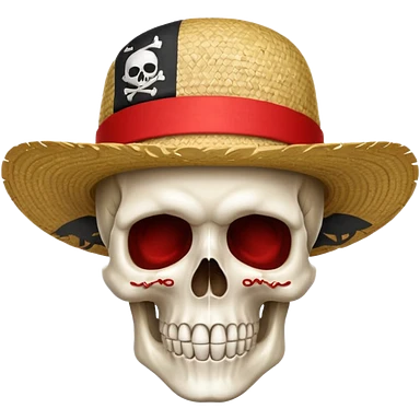 Fait moi un drapeau de tête de mort avec sur la tête un chapeau de paille emoji