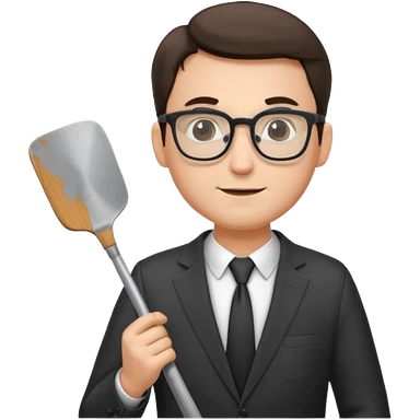 man with glasses wearing a suit and red shoes holding a spatula emoji