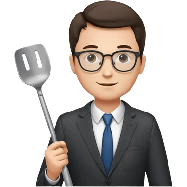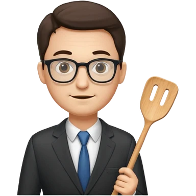 man with glasses wearing a suit and holding a spatula - full size emoji