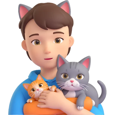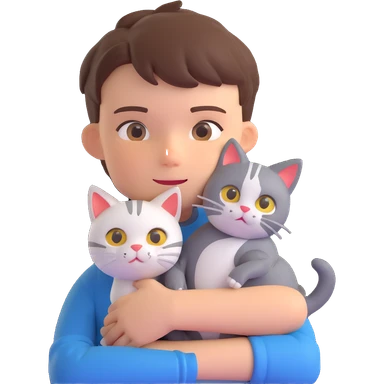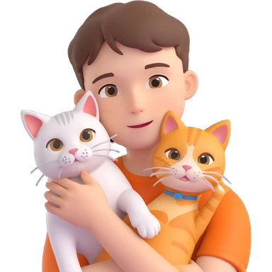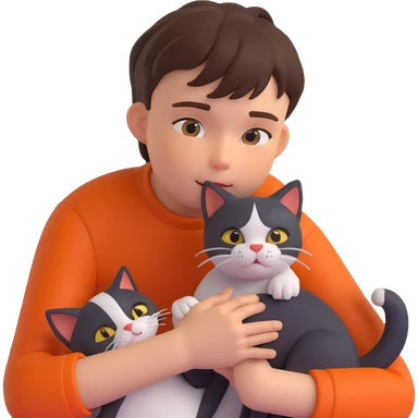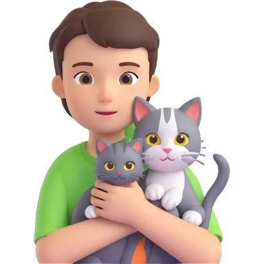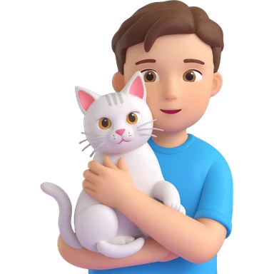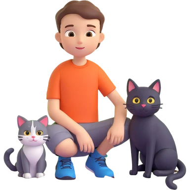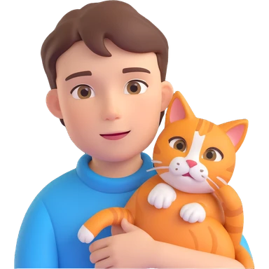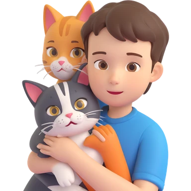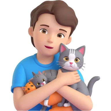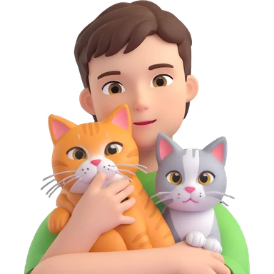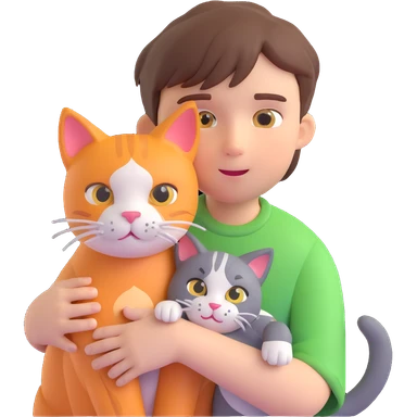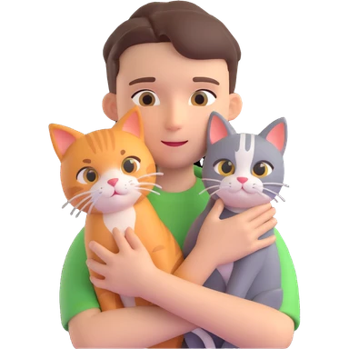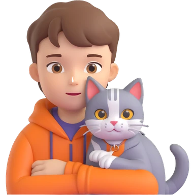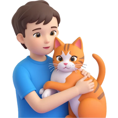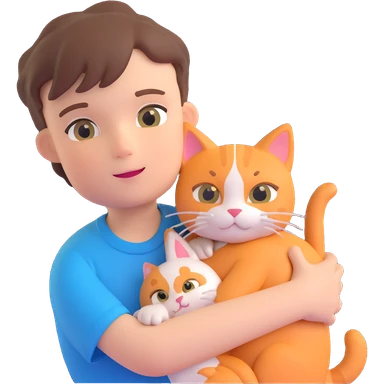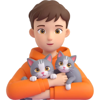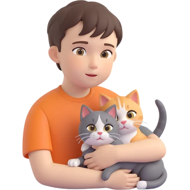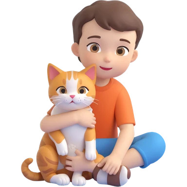 boy and cat pet in forrest background, close up pose emoji