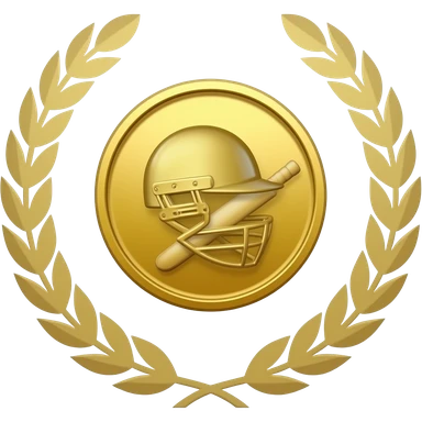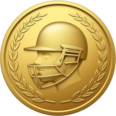 gold coin with head of a cricket batter in helmet in center and thin laurel emoji