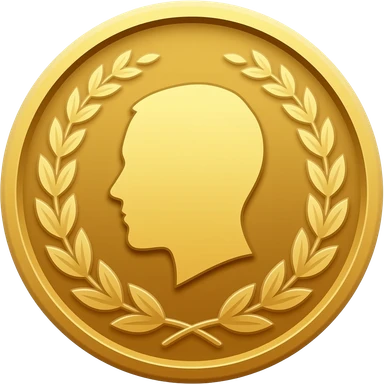 gold coin with large head in center and laurel emoji