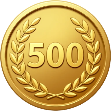 gold coin with large "500" value in center and laurel emoji