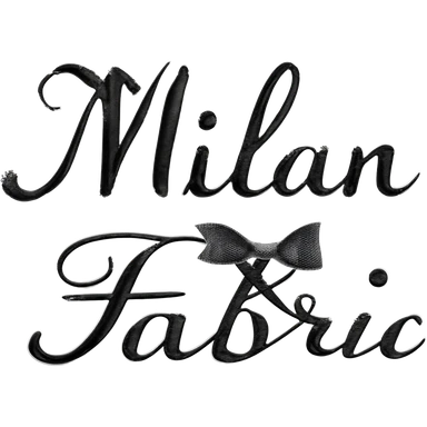 black logo in cursive with the name milan fabric kind of texturue and a black little bow ribbon the letter n emoji