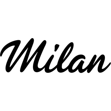 black logo in cursive with the name milan emoji