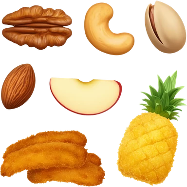 aesthetic ios 18 style different types of nuts such as walnuts, cashews, pistachios, ..., different fried fruits, .... emoji