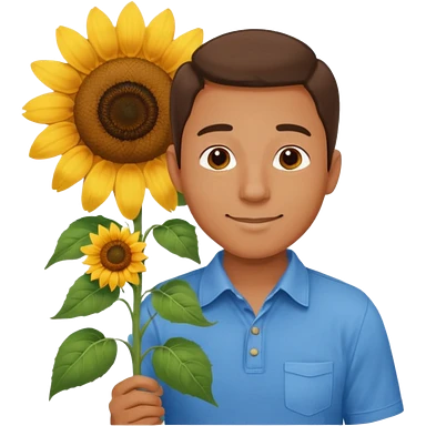 Man smelling sunflower with gentle smile, half body emoji