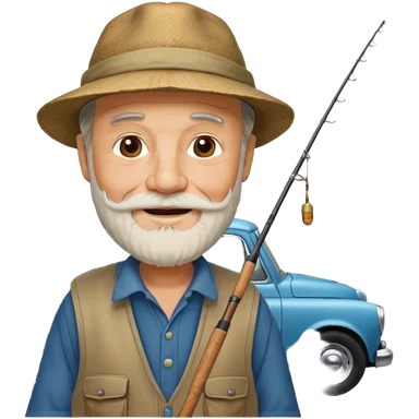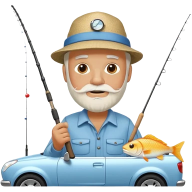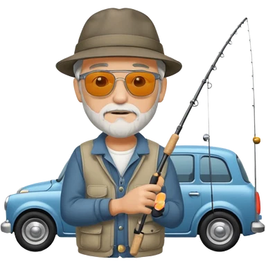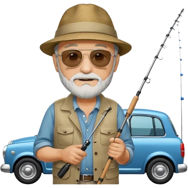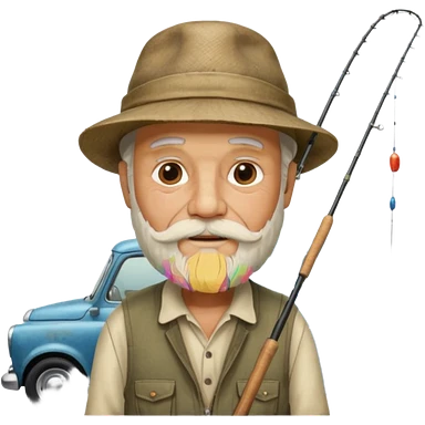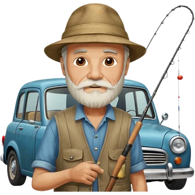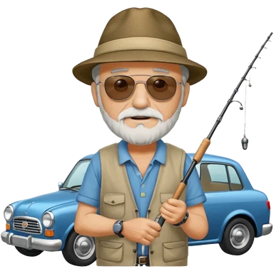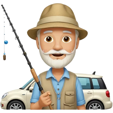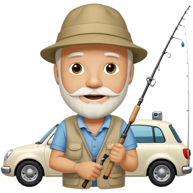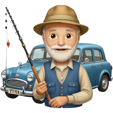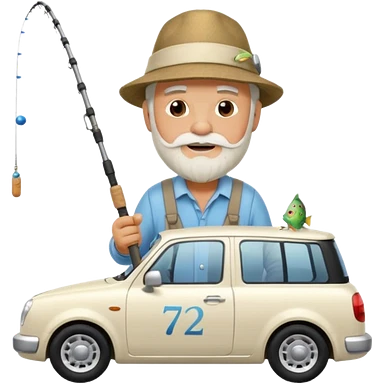 Открытка С Днем рождения дедушке с бородкой. ему 72 года. без текста. тема белый автомобиль и рыбалка. emoji