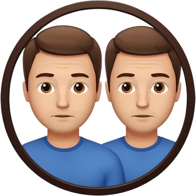 Белый мужчина смотрит в зеркало и видит себя emoji