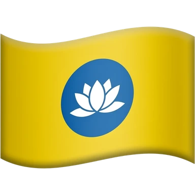 Желтый флаг с белым лотосом в середине внутри голубого круга emoji