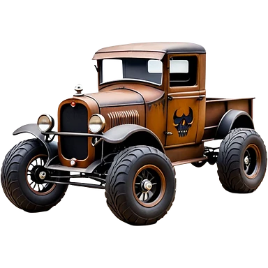 1:10 off-road lcg smoking rusting Basher style 1927 blackened tarnished hotrod rat rod streamlined anime vampire ghostly Dodge zombie infected extended-cab rc bulging pickup (extra wide low-profile pin tires chrome wheels with fenders) emoji