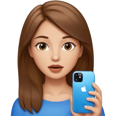 1 woman, hair brown, eyes brown and mouth beautiful in the hand 1 iphone of colour blue emoji