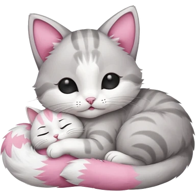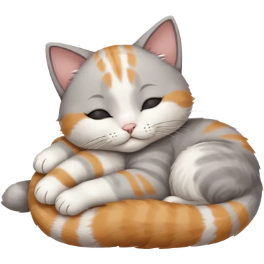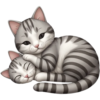 1 grey and white small cat with his eyes closed lying down leaning on his elbow with his paw curled under his head holding it up emoji | AI Emoji Generator