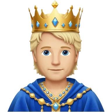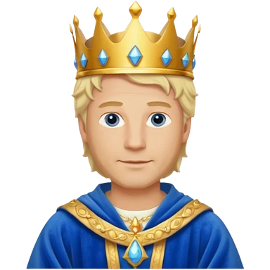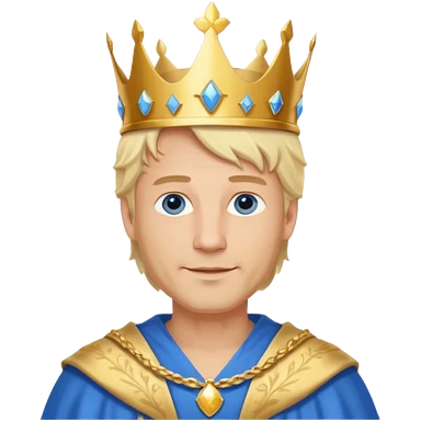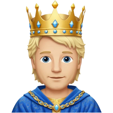 1 Middle-aged white king, 40 years old, blond hair, blond beard, long curly hair, blue eyes, kind and benevolent vibe, gentle smile, wearing a crown and blue robe emoj emoji | AI Emoji Generator