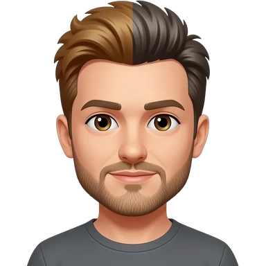 Mullet with flare, some grays with mostly hazel hair, 5 o’clock shade beard emoji