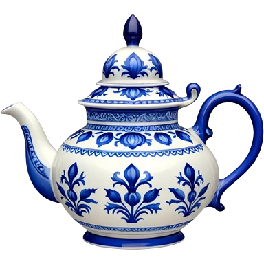 18th century futuristic vivid bold colored detailed Meissen Blue Onion Teapot emoji
