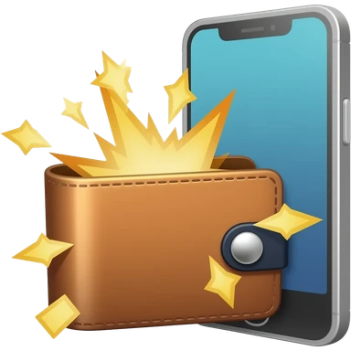 Цифровой рубль: Изобрази кошелек в телефоне, из которого вылетают искорки-пиксели. emoji