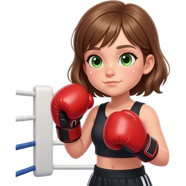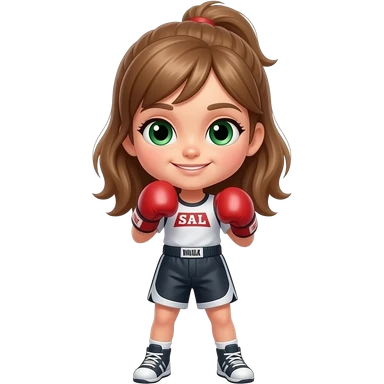Niña 10 años entrenando boxeo pelo castaño claro ojos verdes emoji