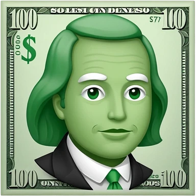 money face emoji. The face should be bright yellow, with exaggerated dollar-sign eyes glowing in neon green, and a tongue sticking out shaped like a crisp $100 bill. Add a shiny, golden aura behind the face emoji