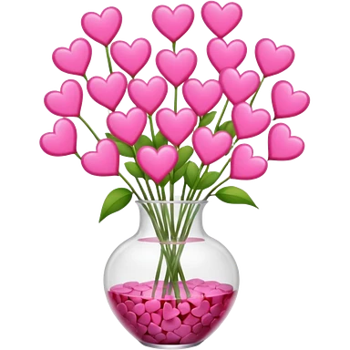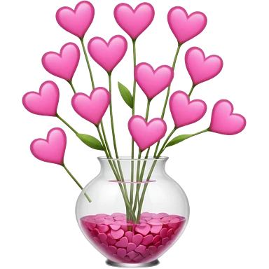 10000000 huge pink hearts on stems in a clear glass vase emoji