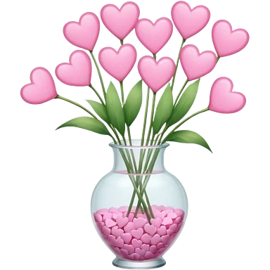 10000000 huge pastel pink hearts on stems in a clear glass vase emoji