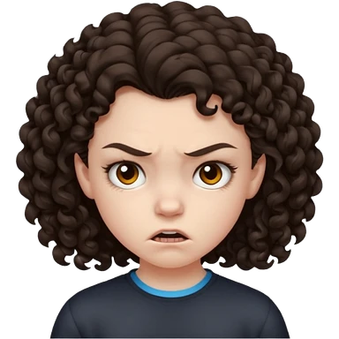 11 years old curly dark brown hair hate the world emoji | AI Emoji Generator
