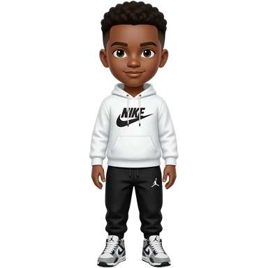 12 year old black boy with brown low taper fade and it’s thick wearing white nike tech and black jordan pants with grey jordan 4’s emoji