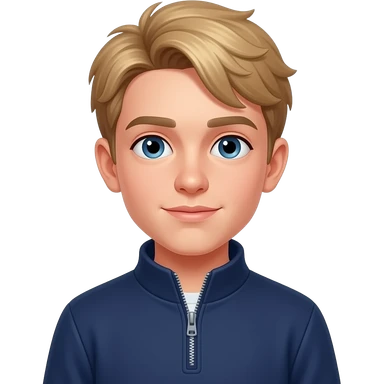 blond 13 year old boy with a quarter zip navy emoji