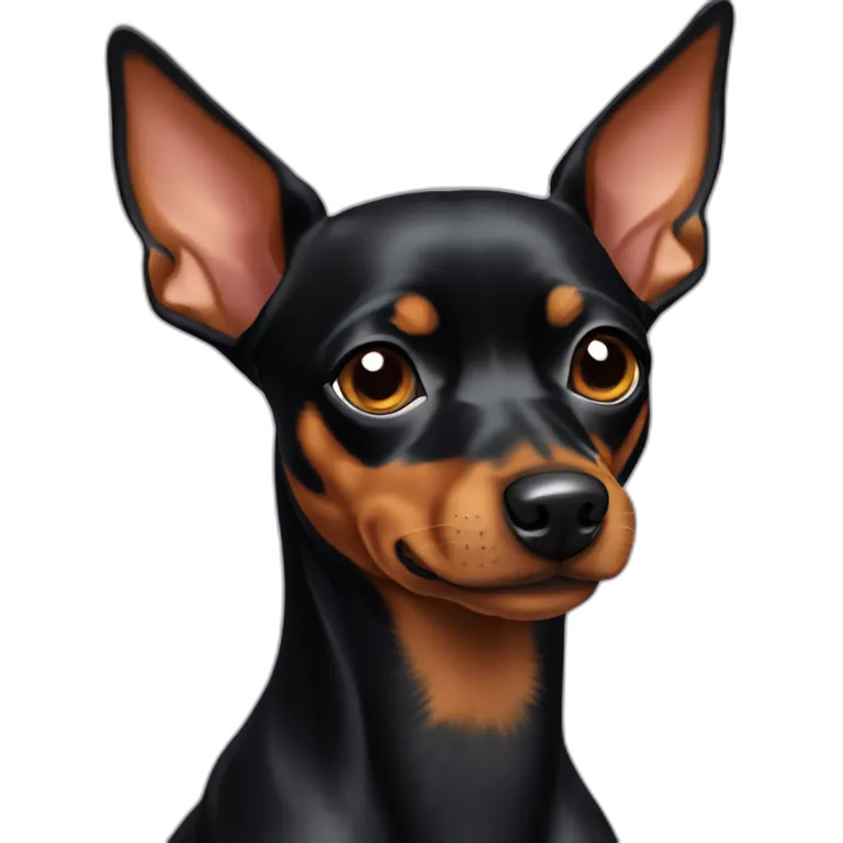 13 year old dark miniature pinscher with piece of left ear missing emoji | AI Emoji Generator