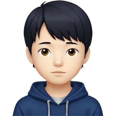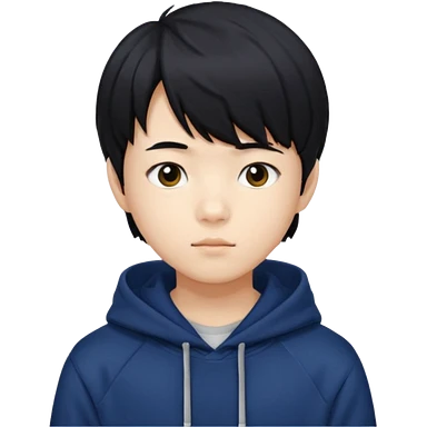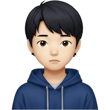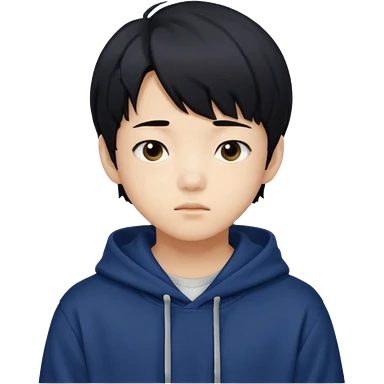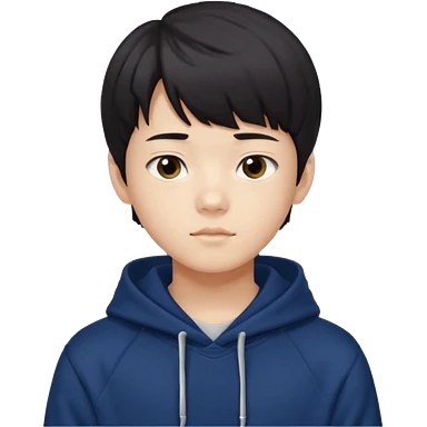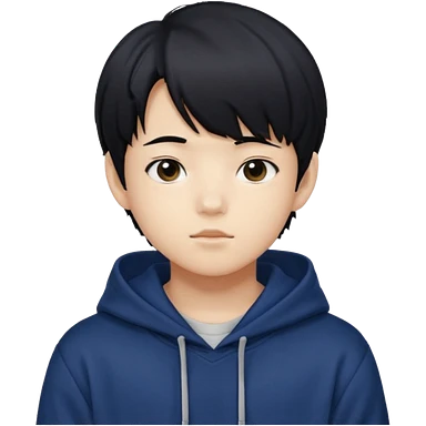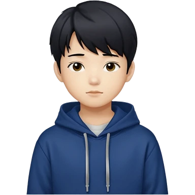 흑발에 앞머리를 덮은 잘생긴 14세 한국소년/ 옷 색깔은 남색 후드티 emoji | AI Emoji Generator