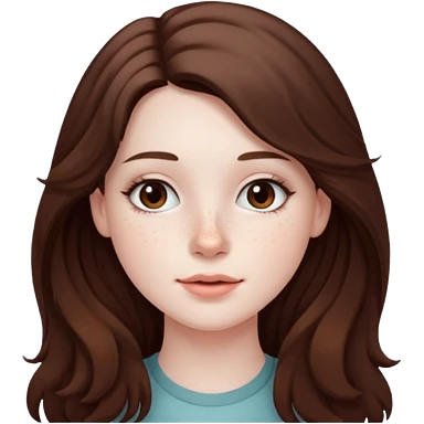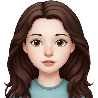 Girl with brown, long, wavy hair, pale skin, freckles, and hazel eyes  emoji