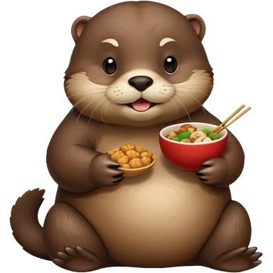 generate a super fat cute otter eating chinese food from a place called taverne de zhao emoji