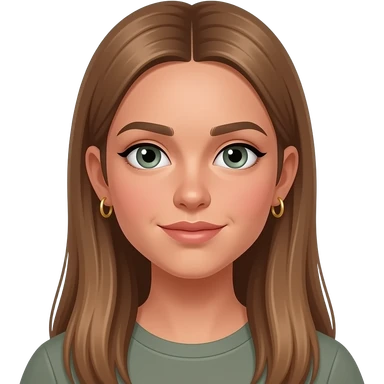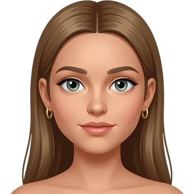 17 year old girl with very long very straight light brown hair, grey-green eyes, tan skin, two sets of small gold hoop earrings emoji