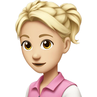 jecka from class of 09, so a white blonde anime girl with a pink polo and a loose half tied up hair bun emoji