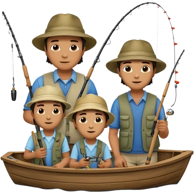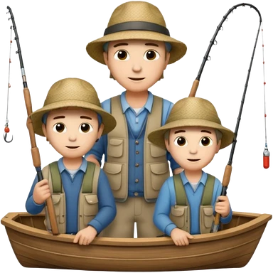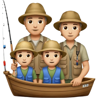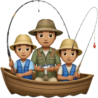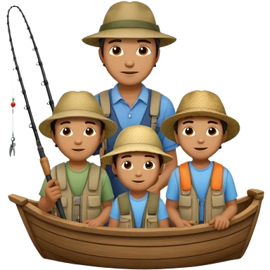 Father and sons fishing on a boat emoji
