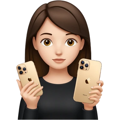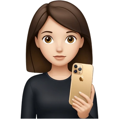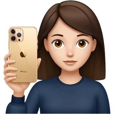 brunette girl holding iphone 16 pro max gold emoji