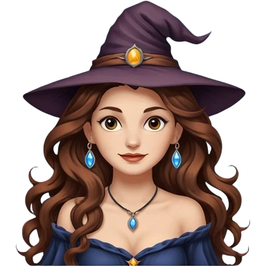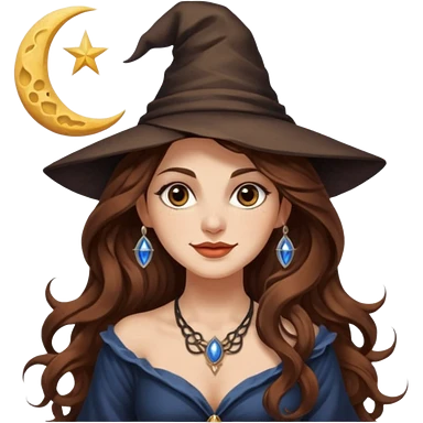 moon witch woman long wavy brown hair tattoos shoulder glance smirk emoji