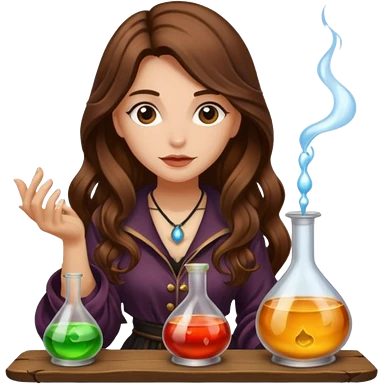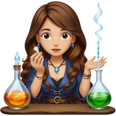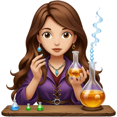 alchemist woman long wavy brown hair tattoos tasting potion drop emoji
