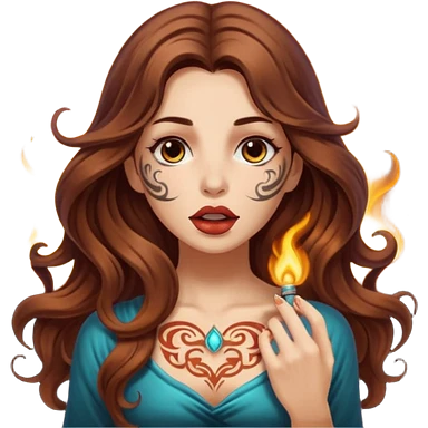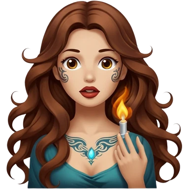 mystic woman long wavy brown hair tattoos warm breath glow from mouth emoji