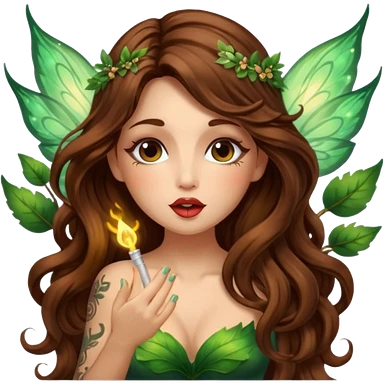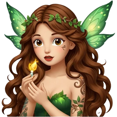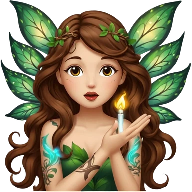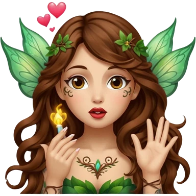 forest fairy woman long wavy brown hair tattoos blowing glowing kiss emoji