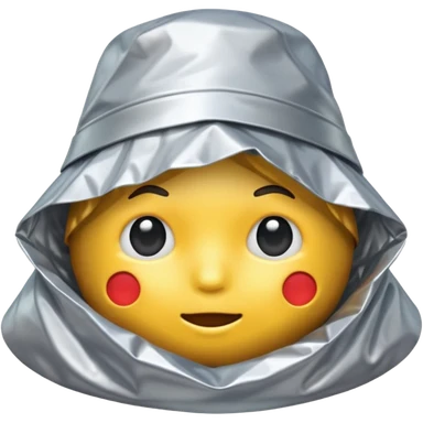 scared emoji wearing a crudely shaped tinfoil hat emoji