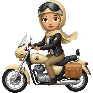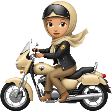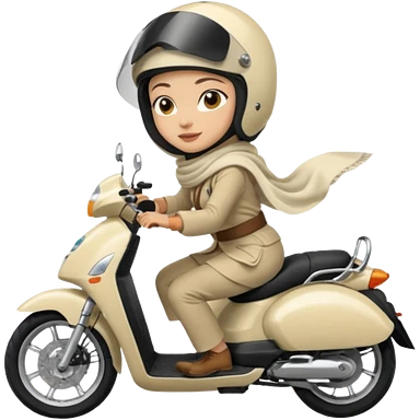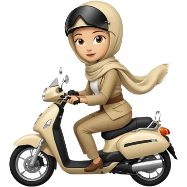 A woman wearing a cream colored pashmina hijab riding a motorbike emoji