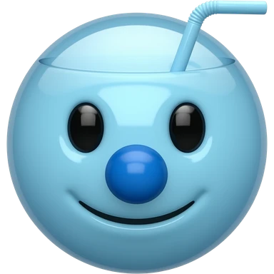 3D emoji fincan, pasifik mavisi renk paleti, büyük yuvarlak mavi burun, fincanın içinde kısa düz pipet, 1930'ların çizgi film estetiği, parlak porselen dokusu, beyaz arka plan, yüksek çözünürlüklü render emoji