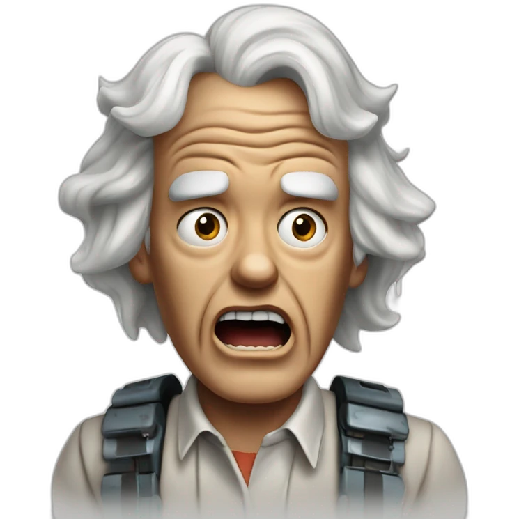 1955 Doc Brown from back to the future looking shocked and his mouth wide open. No eye-ware. emoji | AI Emoji Generator