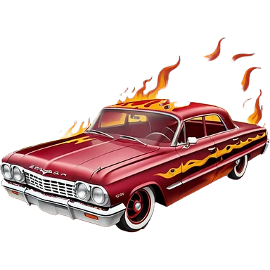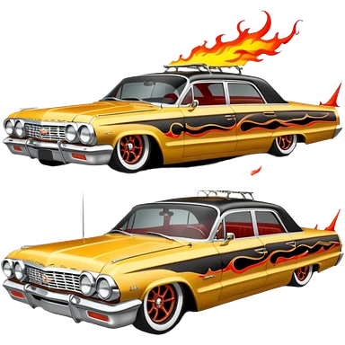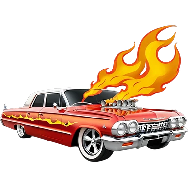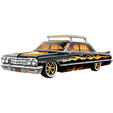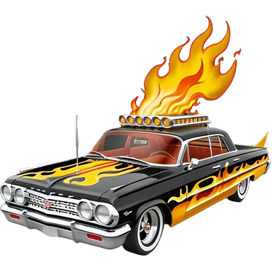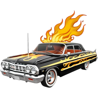 Satan’s streamlined Hot rod custom 1964 impala low rider four door carbon fiber hood driving through hell emoji