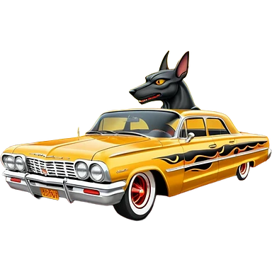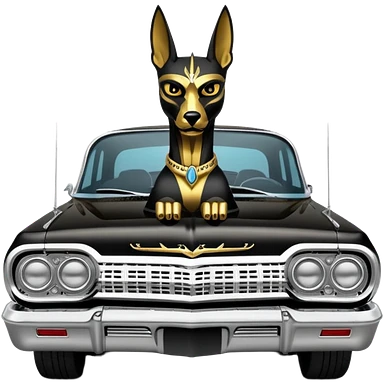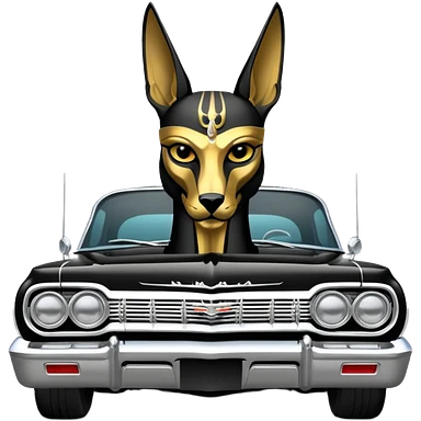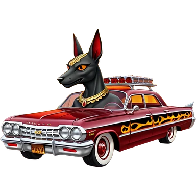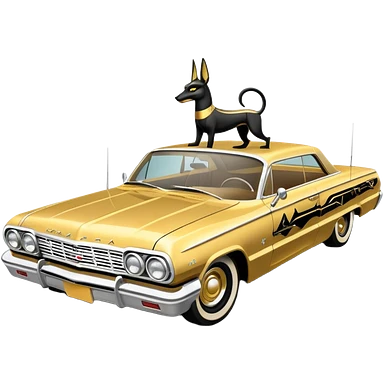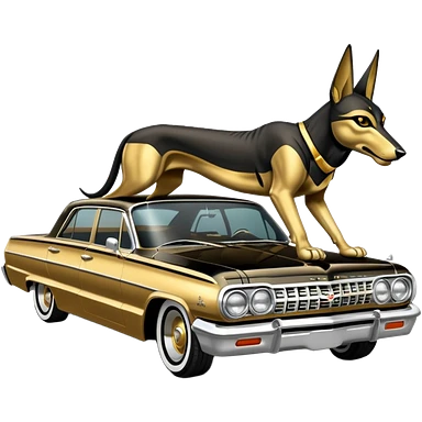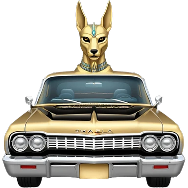 Hot rod custom 1964 impala low rider four door Anubis painted on the hood emoji