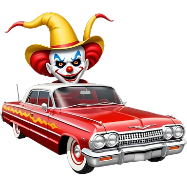 Satan’s streamlined Hot rod custom 1964 impala low rider four door clown painted hood side-mounted under-door chrome exhaust pipes driving straight to hell emoji